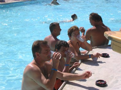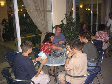 Die Cola Gang beim abendlichen zocken im Hotel.