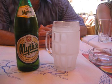 In Kos Stadt wurde das Bier in einem eiskalten Glas serviert.